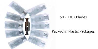 This special package includes 50 of the Original U-102™ Bow-Tie Blades.  These blades have 4-cutting edges for long-lasting performance.