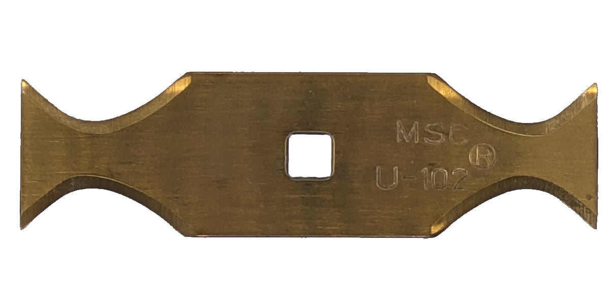 This is the original, quality U-102™ Bow-Tie Blade originally patented in 1939 - NOW made with a Titanium Coating for extra life! Do not accept imitations or substitutes! Insist on the U-102™ Bow-Tie Blade from The Modern Specialties Company